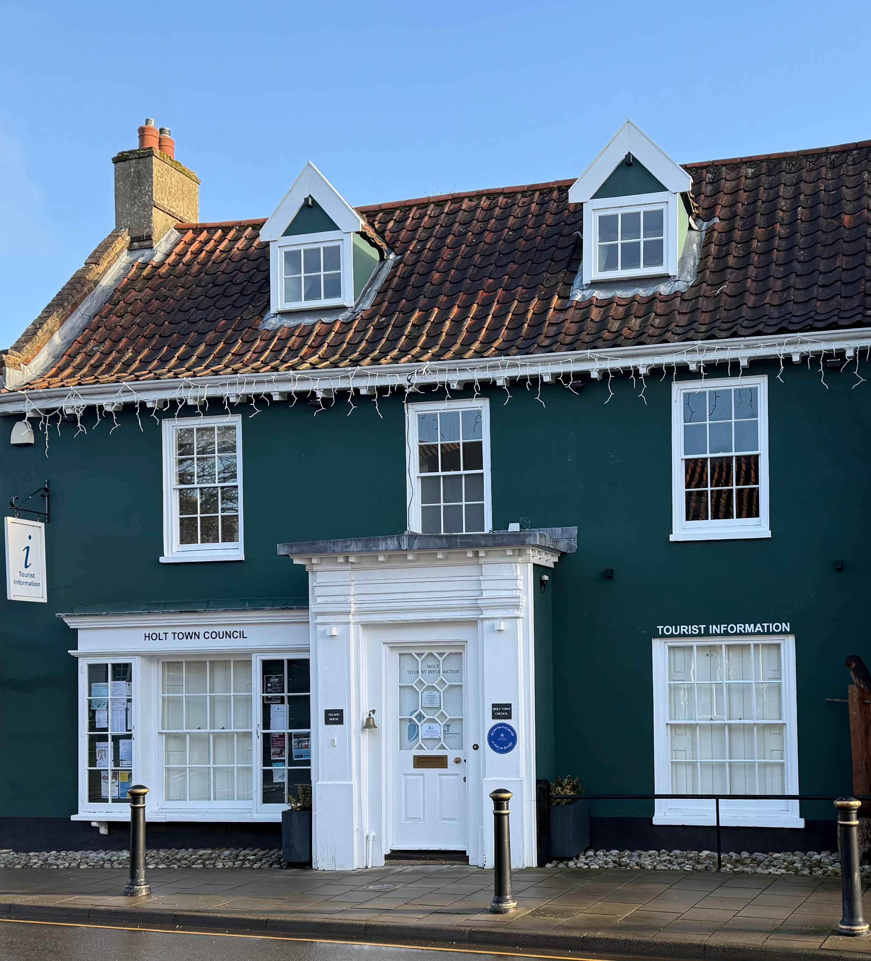Swing by Holt Tourist Information Office at Nelson House, just around the corner from the War Memorial.